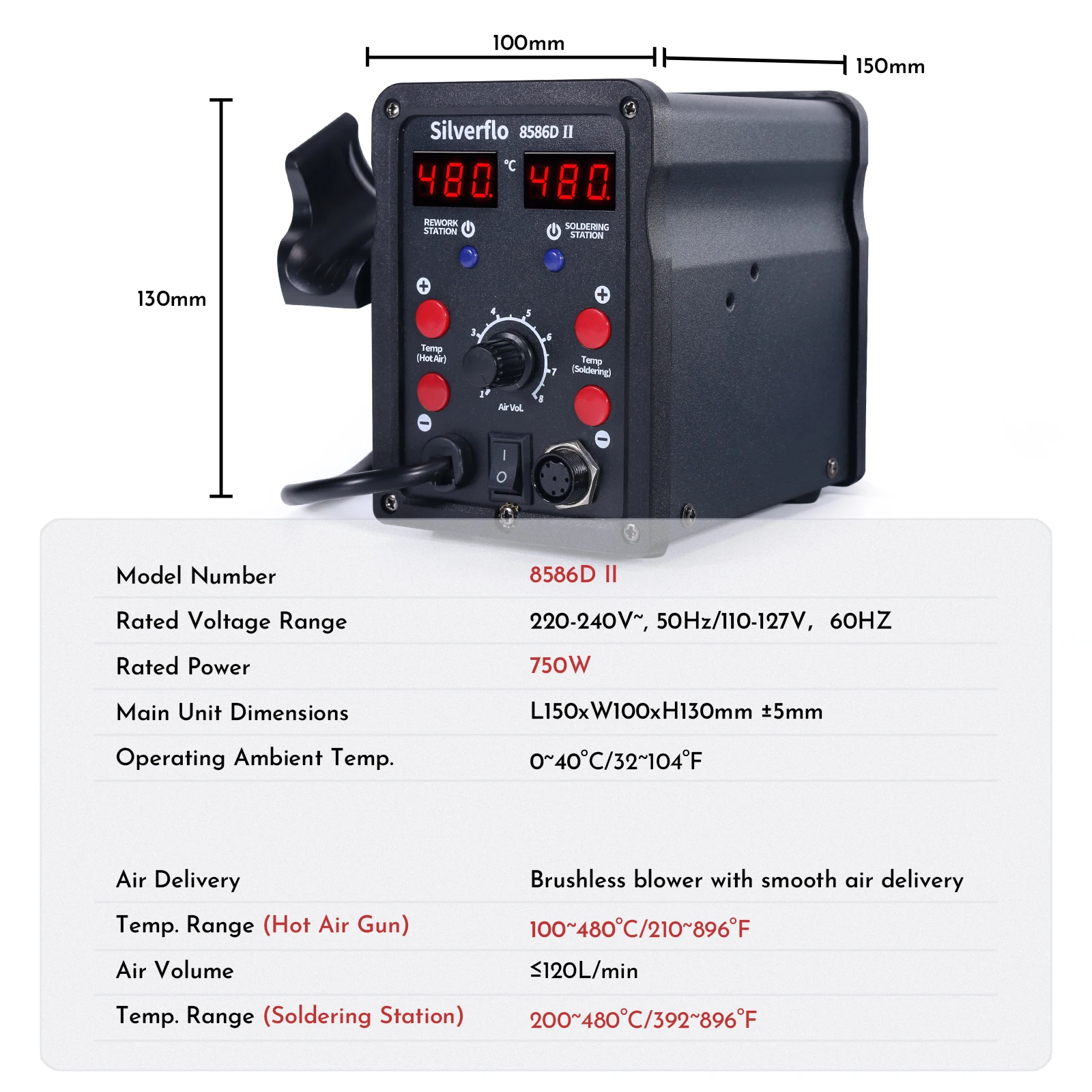 Station de soudage 2 en 1 Fer à souder Station à air chaud Station