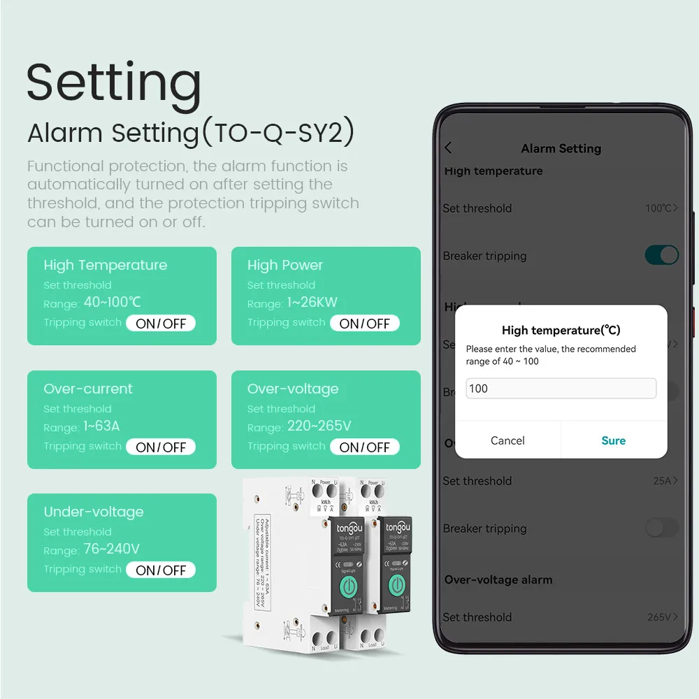 Protection fonctionnelle, la fonction d’alarme est automatiquement activée après le réglage du seuil, et le commutateur de protection peut être activé ou désactivé.