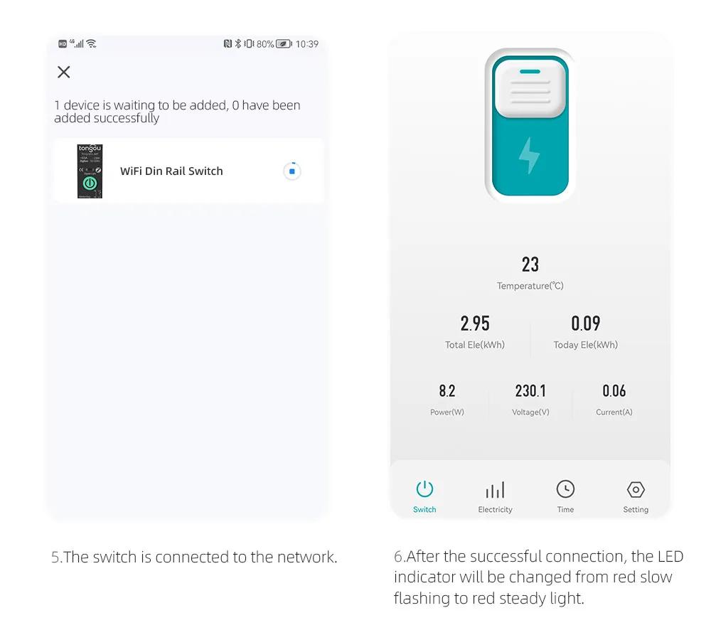 1. Pour connecter le fil du haut du commutateur WiFi DINRail, le fil sous tension se connecte au pôle Let le fil neutre se connecte au pôle N, veuillez vous assurer que le câblage est correct et que le signal WiFi est fort.