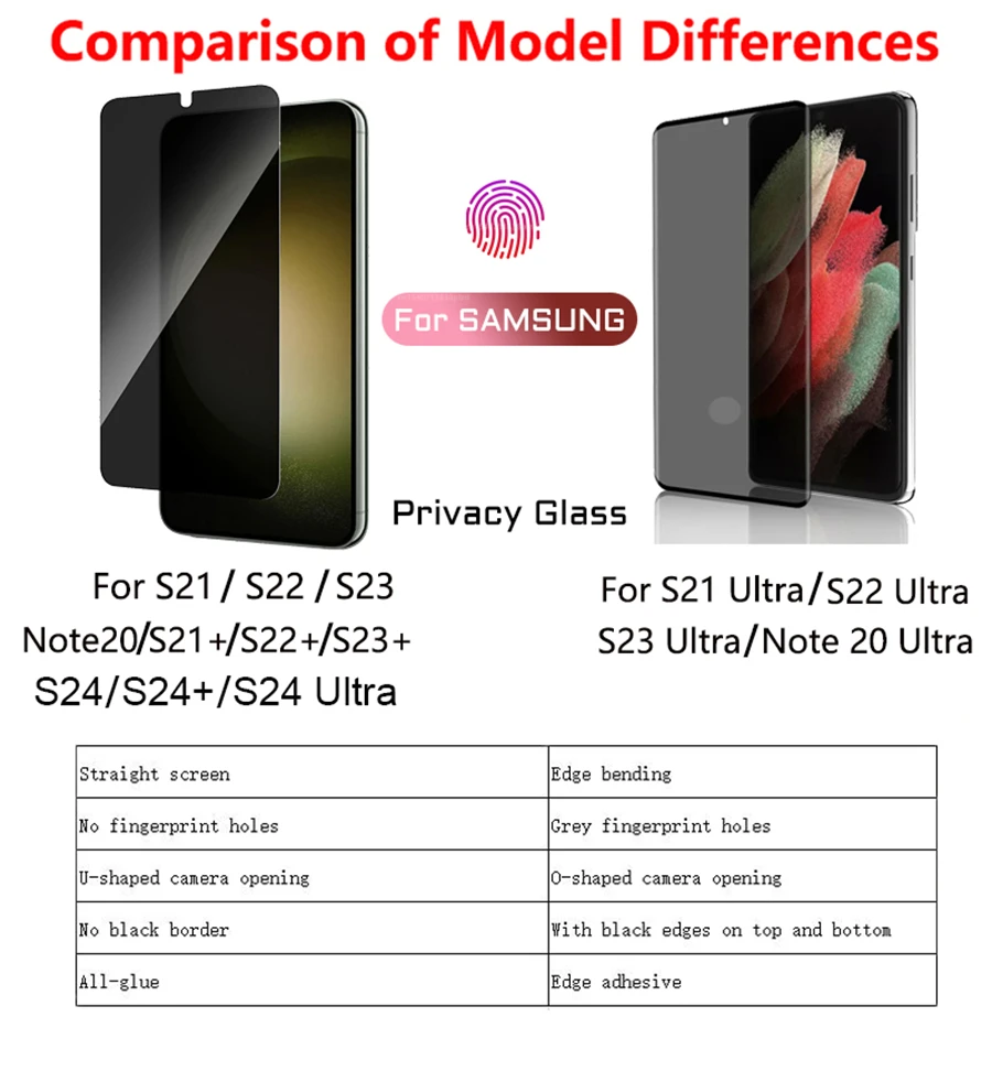 Protecteur d’écran anti-espion pour Samsung Galaxy, verre de confidentialité, déverrouillage par empreinte digitale, Galaxy S24, S23, S22 Ultra, S21 Plus, Note 20, 5G