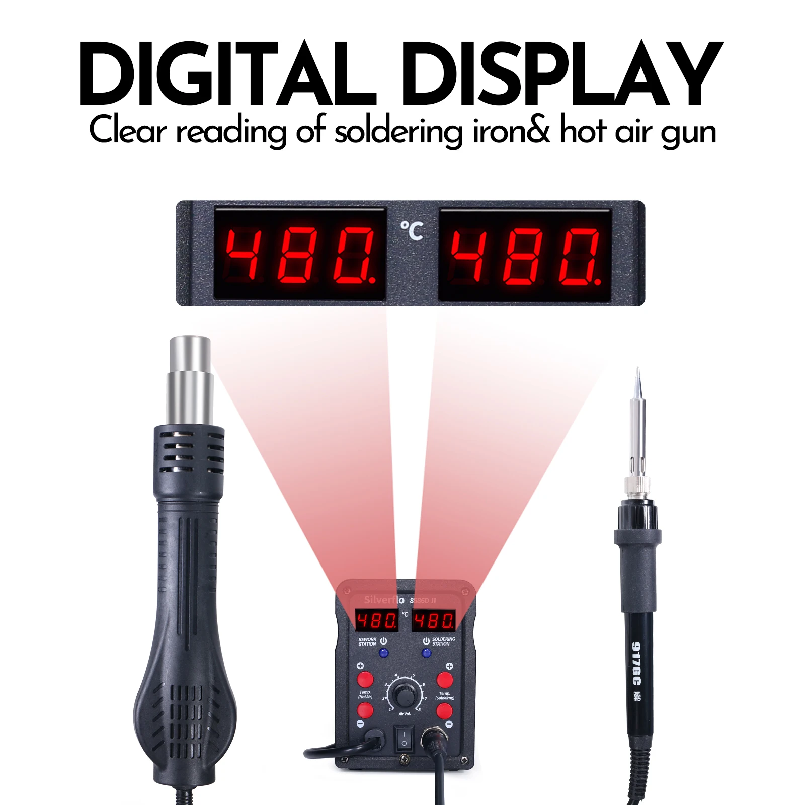 1. Étalonnage numérique de la température, peut améliorer l’efficacité du travail et prolonger la durée de vie du fer à souder.