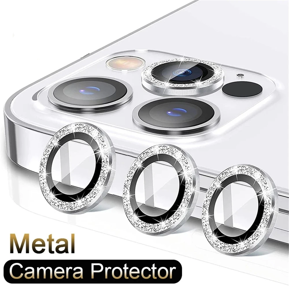 Diamant Métal Caméra Verre Pour iPhone 15 14 Pro Max 13 12 Mini Caméra Lentille Protection Pour iPhone 11 12 Pro Max 15 14 Plus Verre